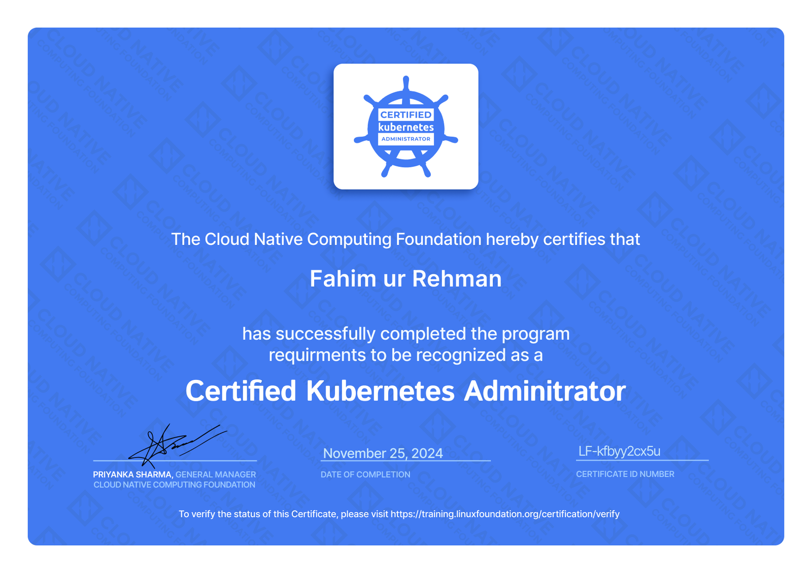 I successfully earned the CKA certification from The Linux Foundation, demonstrating my expertise in managing production-grade Kubernetes clusters. This performance-based certification validates my hands-on skills in: